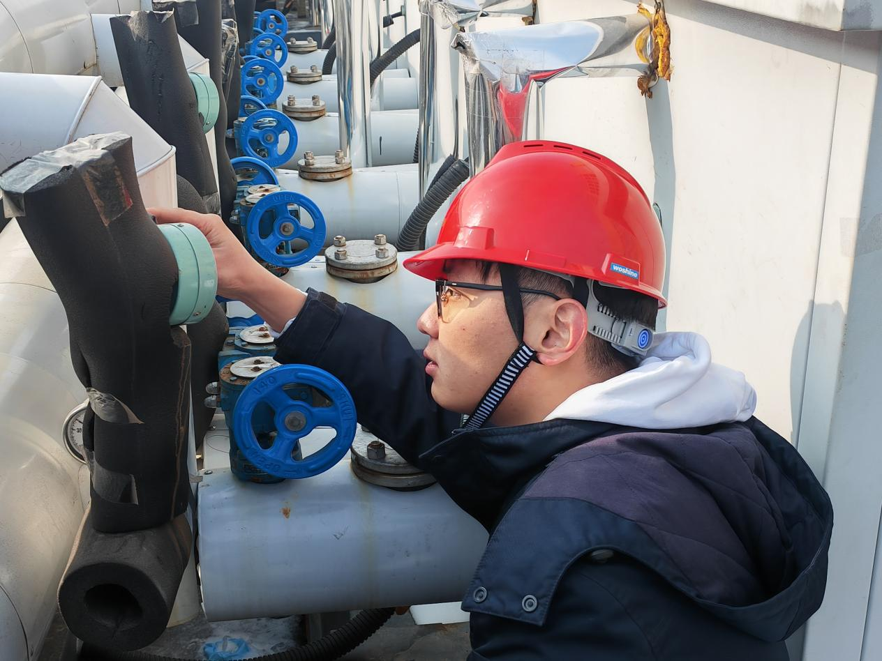 在山东睿冠公司能源站,供暖管家们早早上岗,对生产运行系统、通风除尘、污水处理设施、应急报警、防爆装置等重点生产设备仔细巡查,确保站点管道阀门仪表正常,管道无漏水情况,各个站点安全措施均落实到位,无安全隐患,处于完好适用状态。